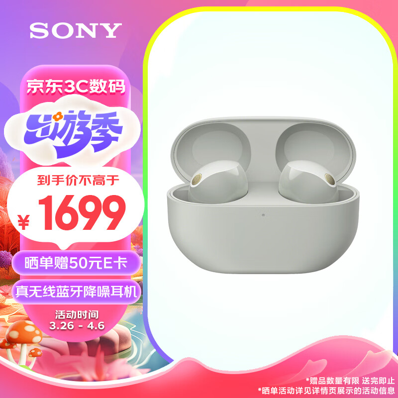 索尼(SONY)WF-1000XM5 真无线蓝牙降噪耳机 新一代降噪豆 智能AI 蓝牙5.3 铂金银价格:1699.00元!