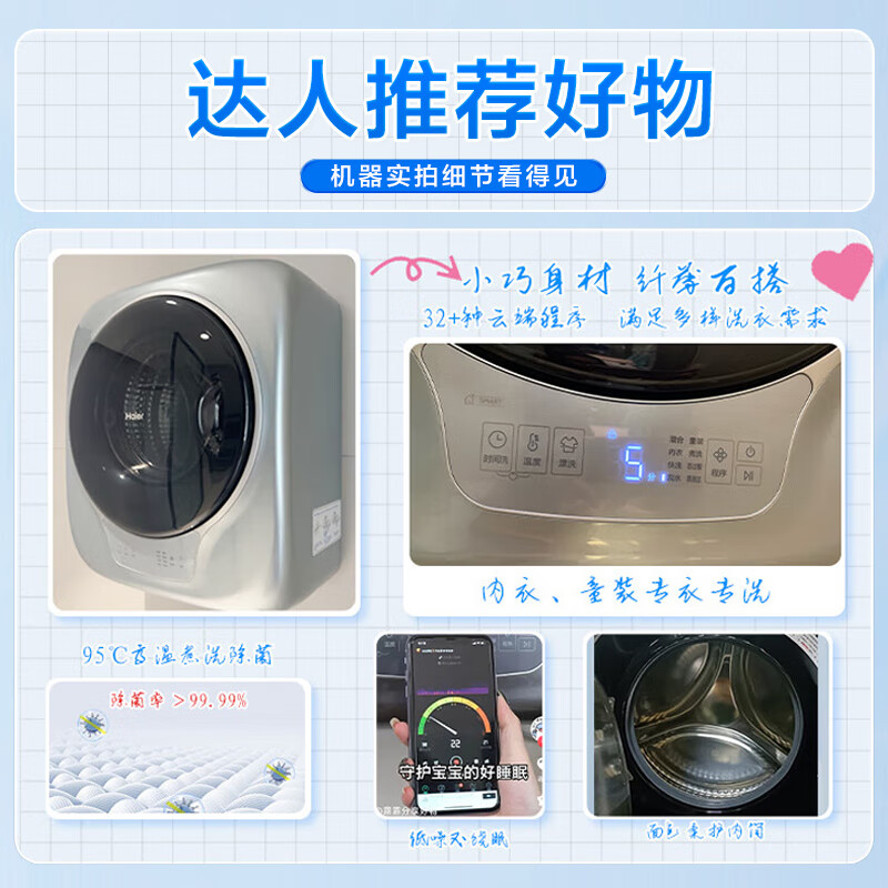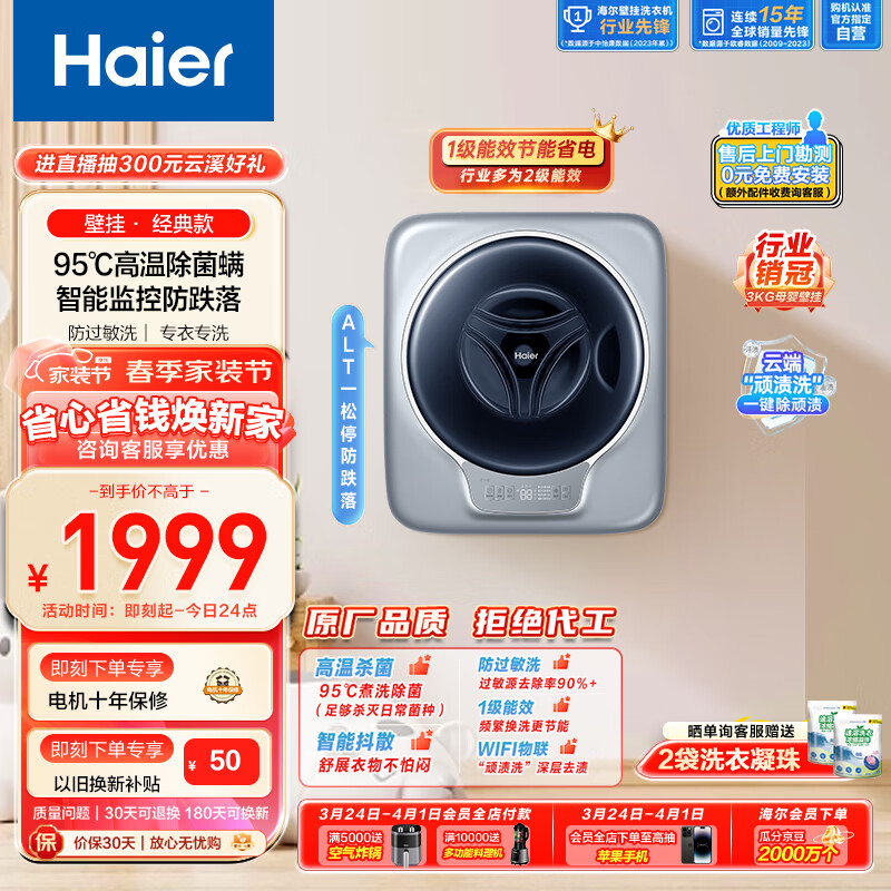 海尔(Haier)壁挂洗衣机 内衣裤洗衣机小型 全自动 婴儿洗衣机 3公斤95℃高温除菌螨 防过敏洗 EGM30717PLUS1U1价格:1948.00元!