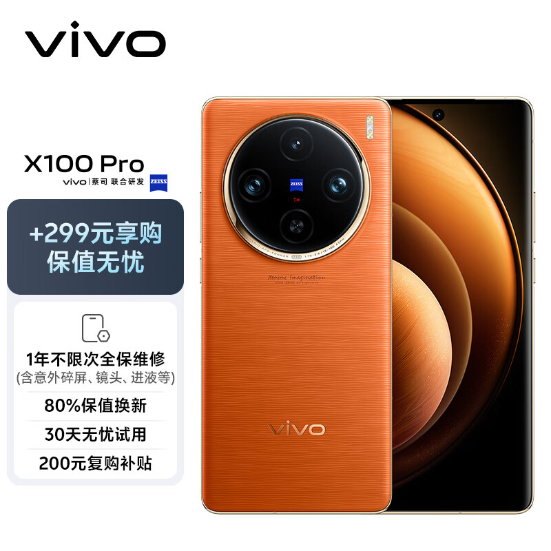 vivo X100 Pro 16GB+512GB 落日橙【保值无忧套装】蔡司APO超级长焦 蓝晶×天玑9300 5400mAh蓝海电池 手机价格:5798.00元!