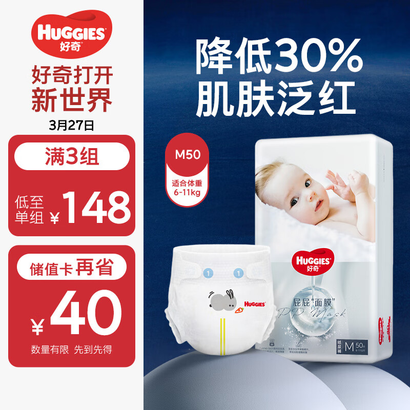 好奇(Huggies)屁屁面膜纸尿裤中号M50婴儿尿不湿超薄透气价格:150.20元!