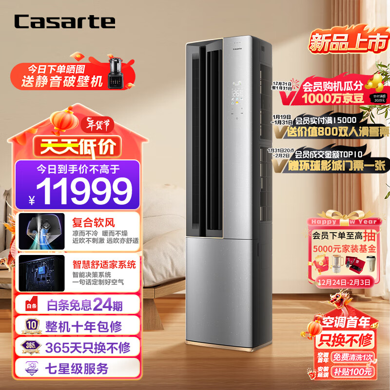 卡萨帝(Casarte)3匹 星云 双极离子除菌 复合软风 立式空调柜机 一级能效 智能变频 CAP7216BAB(81)VU1价格:11999.00元!