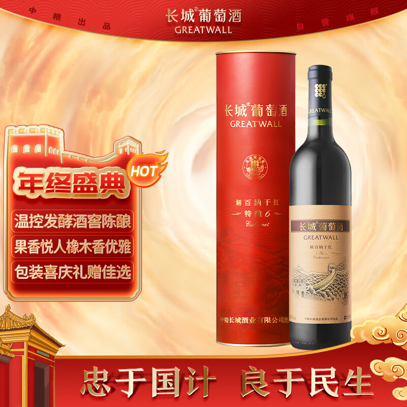 长城 特酿6解百纳干红葡萄酒 圆筒 750ml 单瓶装价格:58.50元!