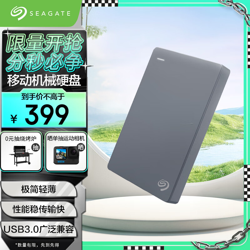 希捷(SEAGATE)移动硬盘 1TB USB3.0 简 2.5英寸 机械硬盘 高速 轻薄 便携 兼容PS4 外接 存储备份价格:399.00元!
