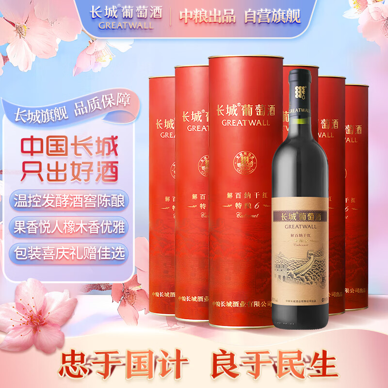 长城 特酿6解百纳干红葡萄酒 圆筒 750ml*6瓶 整箱装价格:430.00元!