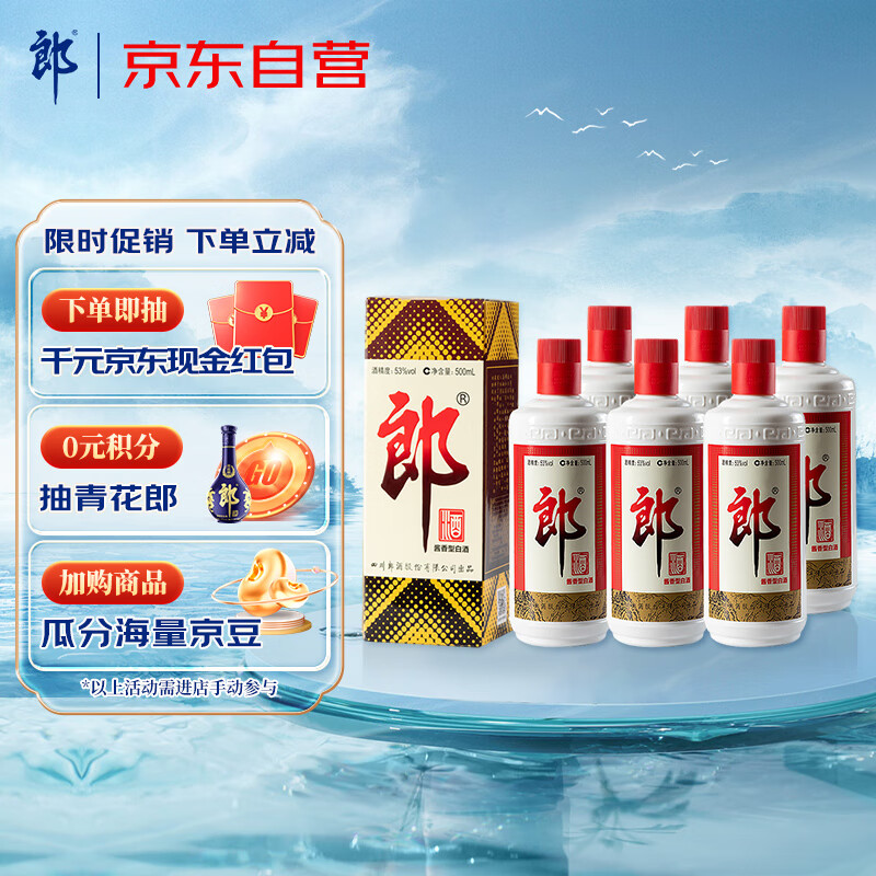郎酒 郎牌郎酒 酱香型 53度 500ml*6瓶分装非原箱【礼品装】价格:1580.00元!