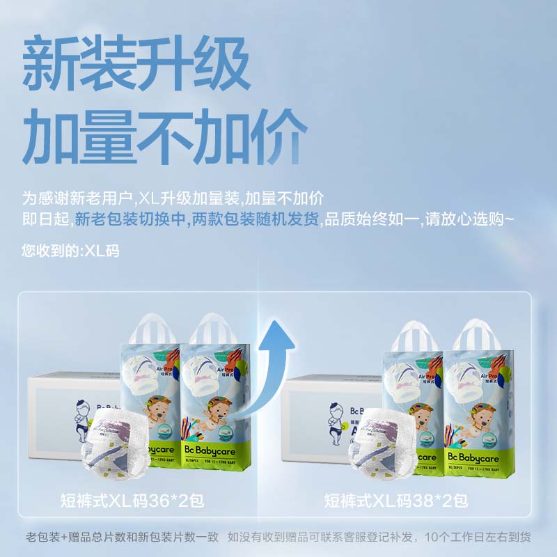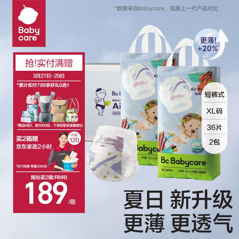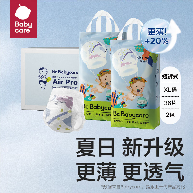 babycare Air pro夏日超薄拉拉裤成长裤加量装超薄透气箱装XL76片12-17kg价格:289.00元!