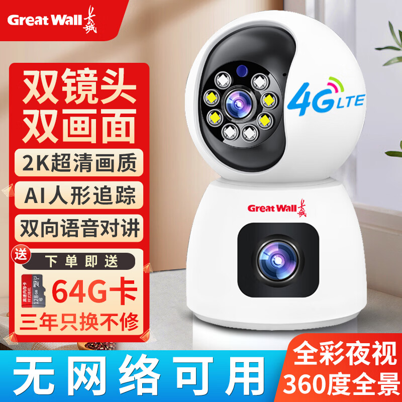 长城家用无线摄像头室内监控器360度无死角带全彩夜视追踪全景户外4G室外无需连wifi价格:152.00元!