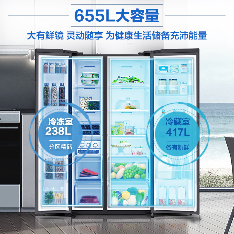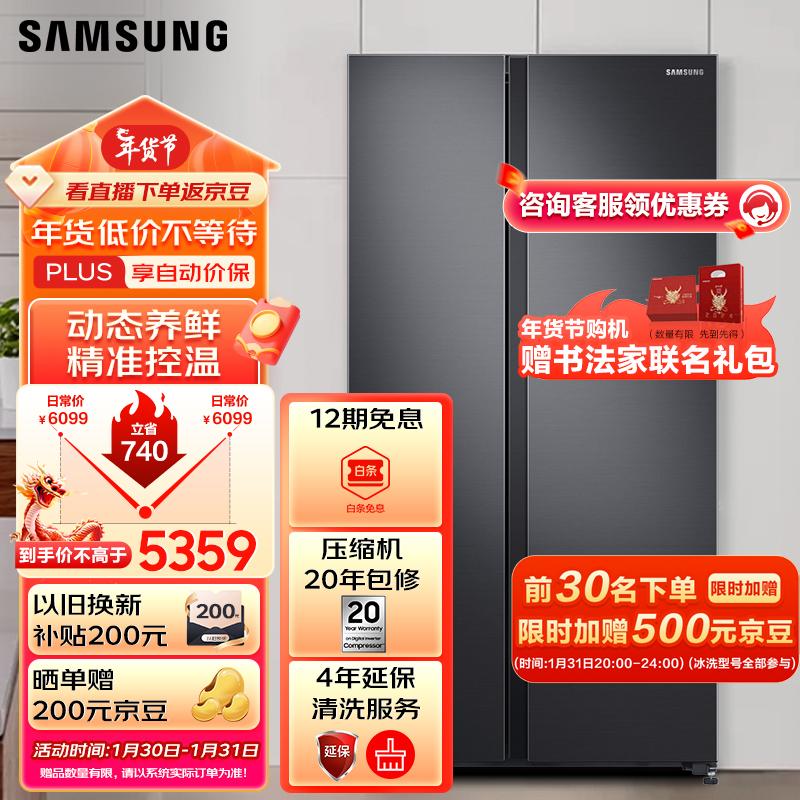 三星(SAMSUNG)655升双开门冰箱 大容量对开门家用电冰箱 全环绕气流 风冷无霜变频RS62R5007B4/SC 黑价格:5359.00元!