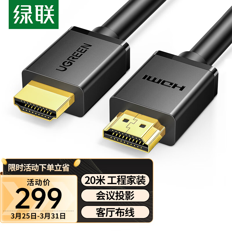 绿联HDMI线数字高清线 HDMI工程线 3D视频线 笔记本电脑机顶盒接电视投影仪显示器数据连接线 20米价格:328.00元!