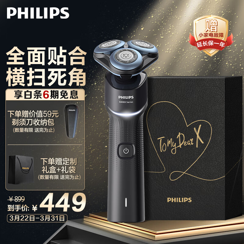 飞利浦(PHILIPS)电动剃须刀5X 炫光黑 SkinEase肌能舒缓科技刮胡刀 生日礼物 送男友 送老公价格:389.00元!