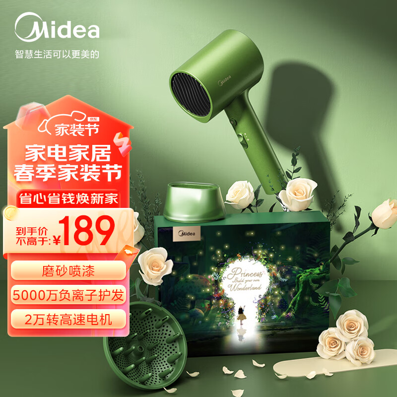 美的(Midea)吹风机 5000万负离子电吹风吹风机家用速干护发吹风筒 节日礼物 MB-AJ0502价格:189.00元!