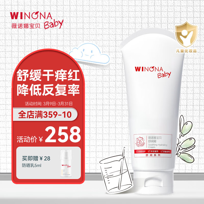 薇诺娜宝贝舒润霜婴幼儿宝宝儿童面霜身体乳青刺果油缓解干痒红保湿润肤200g价格:258.00元!