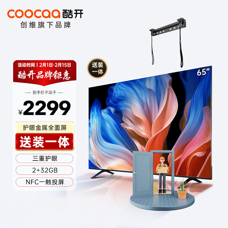 酷开创维K3 65英寸电视 送装一体 2+32G内存 无边屏 智能语音 多功能投屏平板游戏液晶电视机65P3D价格:2299.00元!