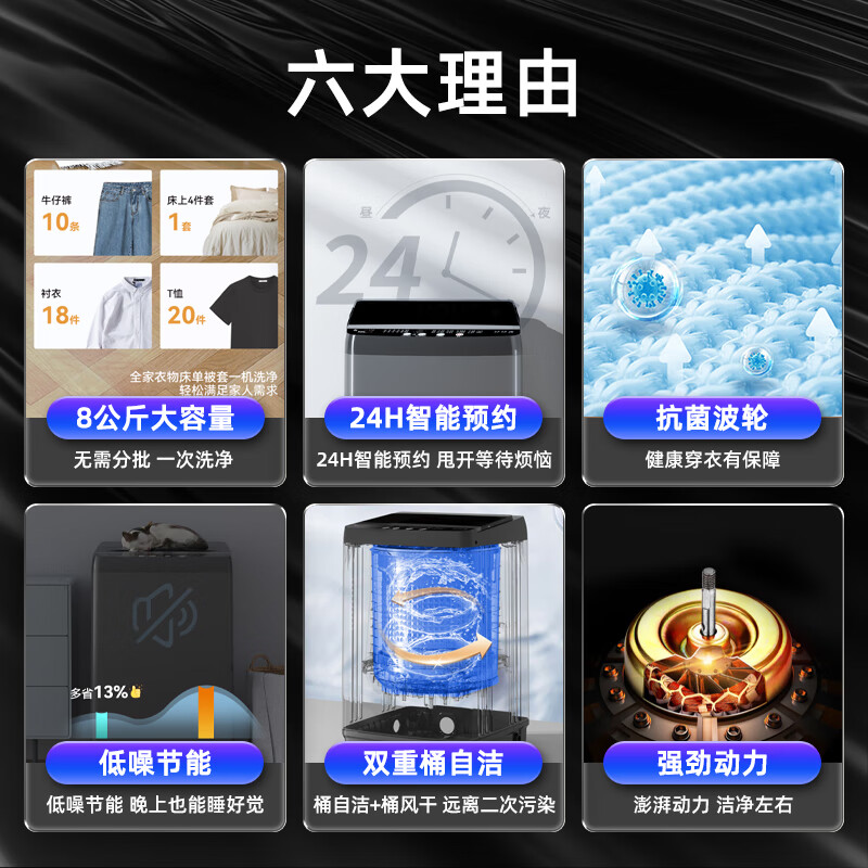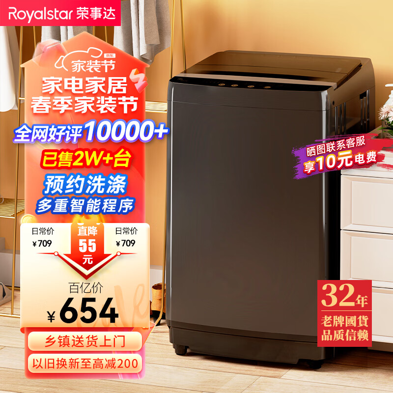 荣事达(Royalstar)洗衣机 8公斤全自动家用租房波轮脱水机甩干洗衣机 以旧换新 灰色ERVP191016T价格:654.00元!
