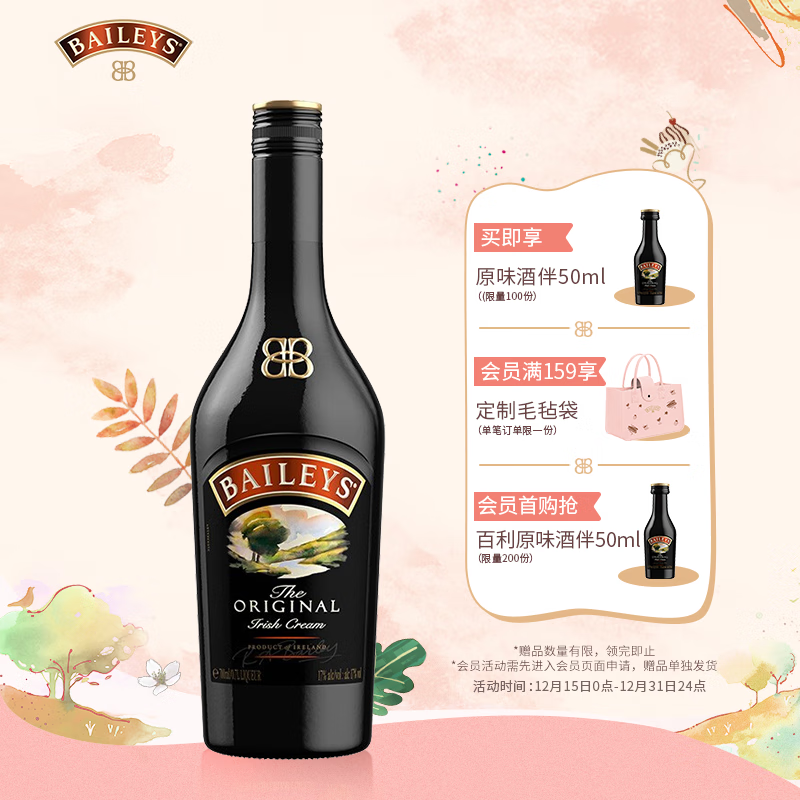百利(Baileys)节日送礼 甜酒 力娇酒利口酒 奶酒 原味 洋酒 700ml价格:95.00元!