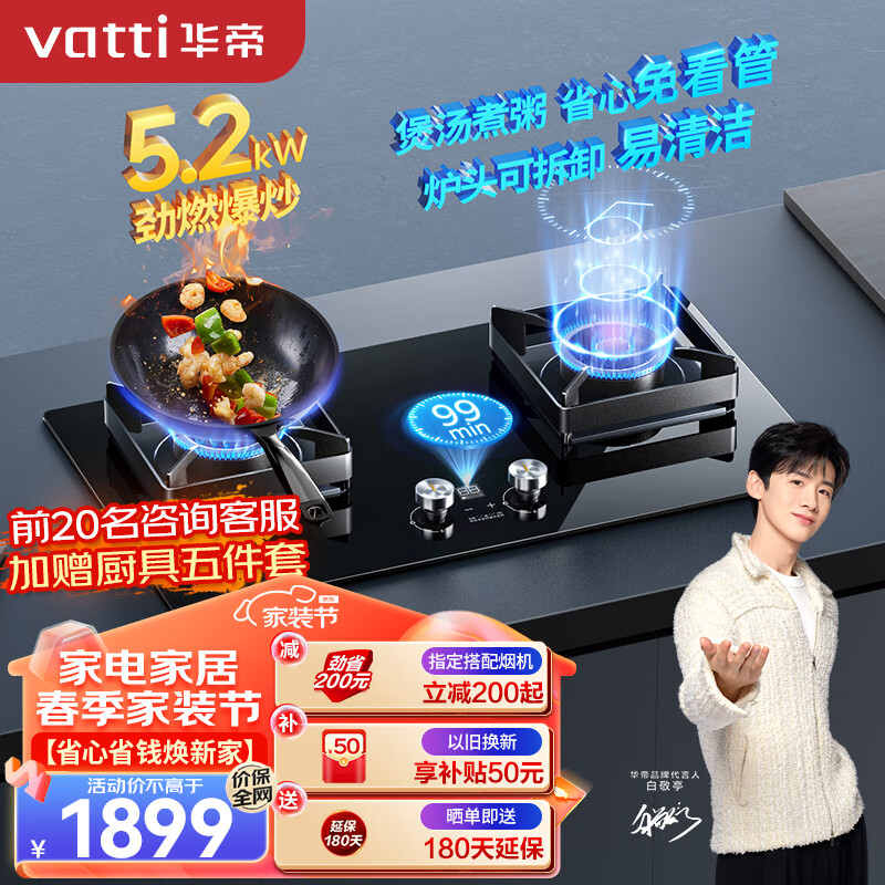 华帝(VATTI)燃气灶家用5.2kW超大火力高热效易打理分体定时换灶不改孔灶具灶台JZT-i10078B(天然气)价格:1899.00元!