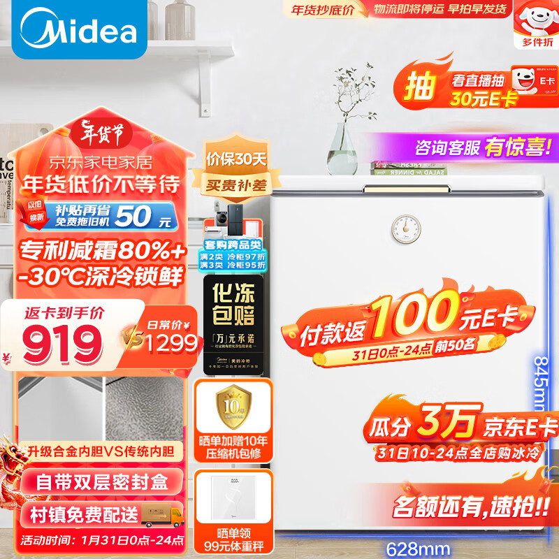 美的(Midea)复古时光冰柜 142升-30℃锁鲜减霜节能家用囤货小冰柜 电子控温 单温母乳小冷柜 BD/BC-142KMT(E)价格:1119.00元!