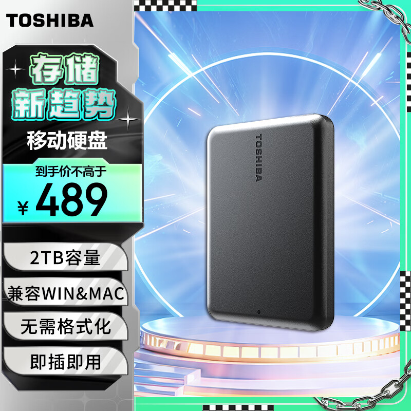 东芝(TOSHIBA) 2TB 移动硬盘机械Partner USB 3.2 Gen 1 2.5英寸 兼容Mac 轻薄便携 稳定耐用 高速传输价格:489.00元!