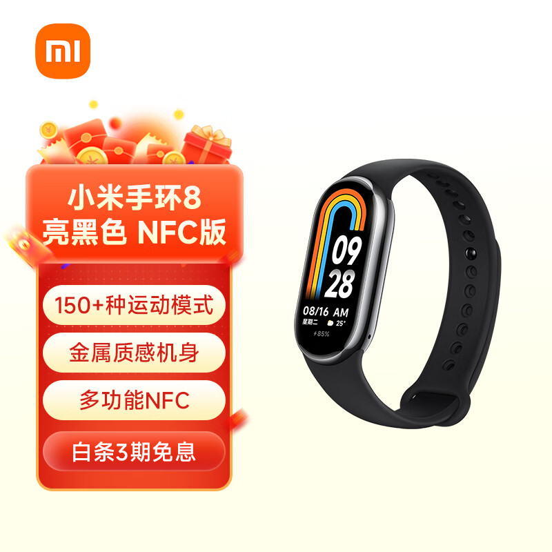 小米(MI)手环8 NFC版 150种运动模式 血氧心率睡眠监测 支持龙年表盘 电子门禁 智能手环 运动手环 亮黑色价格:239.00元!