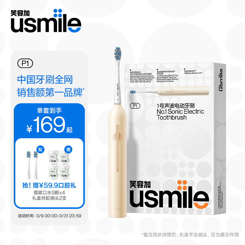 usmile笑容加电动牙刷 成人情侣版 软毛声波自动牙刷 1号刷 奶油黄价格:169.00元!
