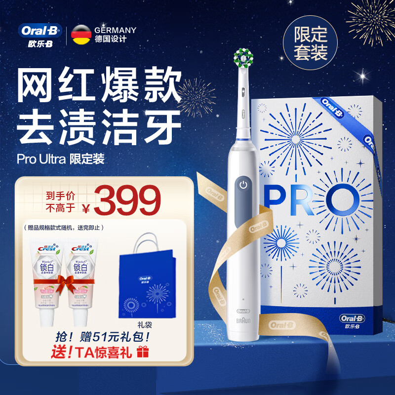欧乐B成人电动牙刷Pro4Ultra男士刷3D声波圆头Pro系列深度清洁牙龈按摩情侣送礼赠生日礼物价格:439.00元!