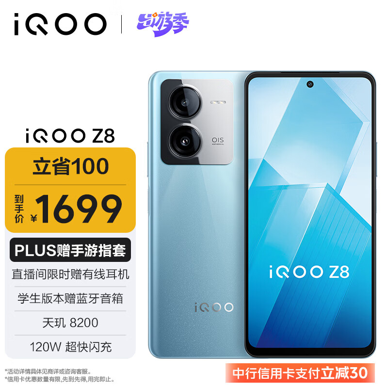 vivo iQOO Z8 12GB+256GB 星野青 天玑 8200 120W超快闪充 5000mAh超长续航 5G手机价格:1799.00元!