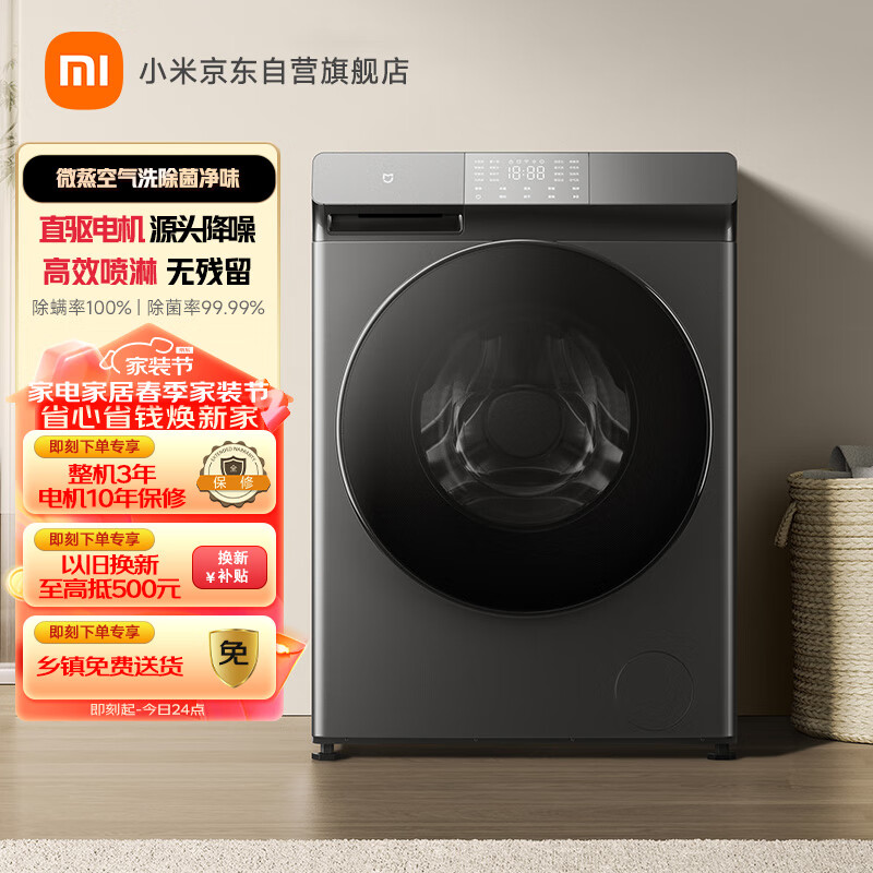 米家小米 滚筒洗衣机全自动 10kg洗烘一体 微蒸空气洗除菌喷淋 小爱语音直驱电机节能 XHQG100MJ202价格:1596.00元!