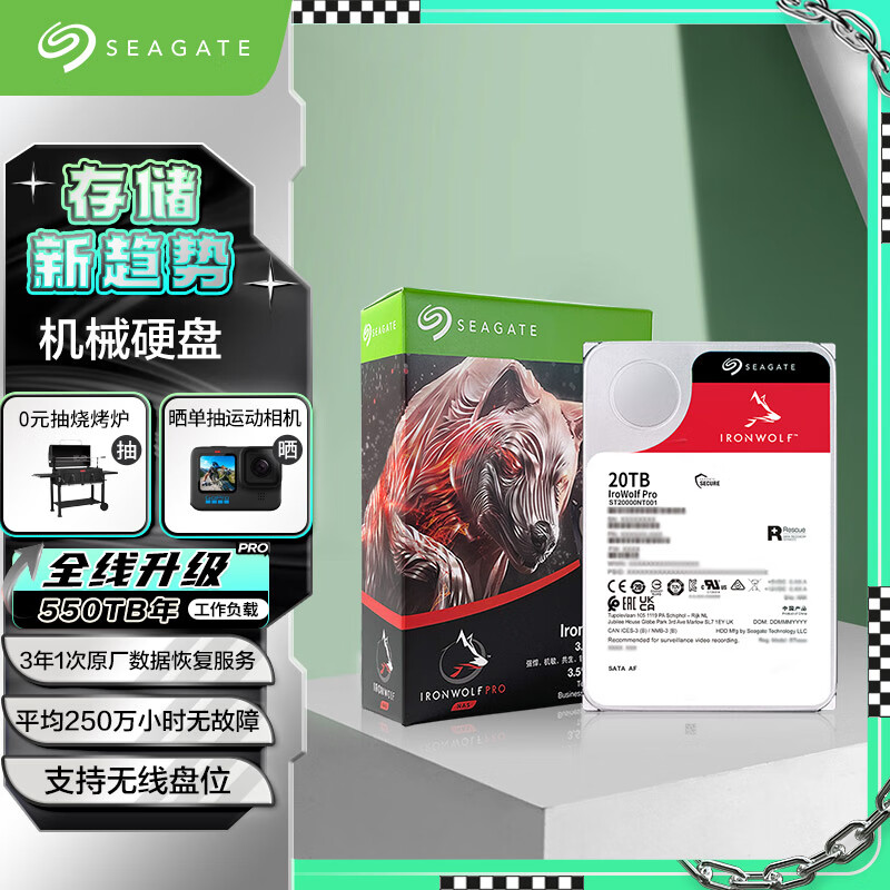 希捷(SEAGATE)NAS硬盘20TB 企业级 256MB 7200转 CMR垂直 SATA 希捷酷狼PRO 机械硬盘 550年负载 数据恢复服务价格:4499.00元!