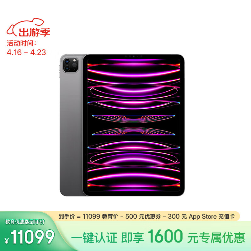 Apple/苹果【教育优惠】 iPad Pro 11英寸 2022年款(1TB WLAN版/M2芯片/MNXK3CH/A)深空灰色价格:11899.00元!
