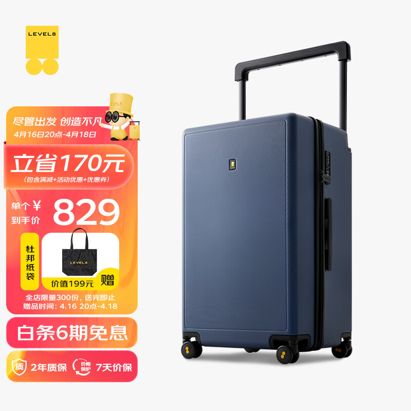 地平线8号(LEVEL8)行李箱 男女密码大容量万向轮26英寸宽拉杆大旅行家PC拉杆箱 蓝色价格:999.00元!