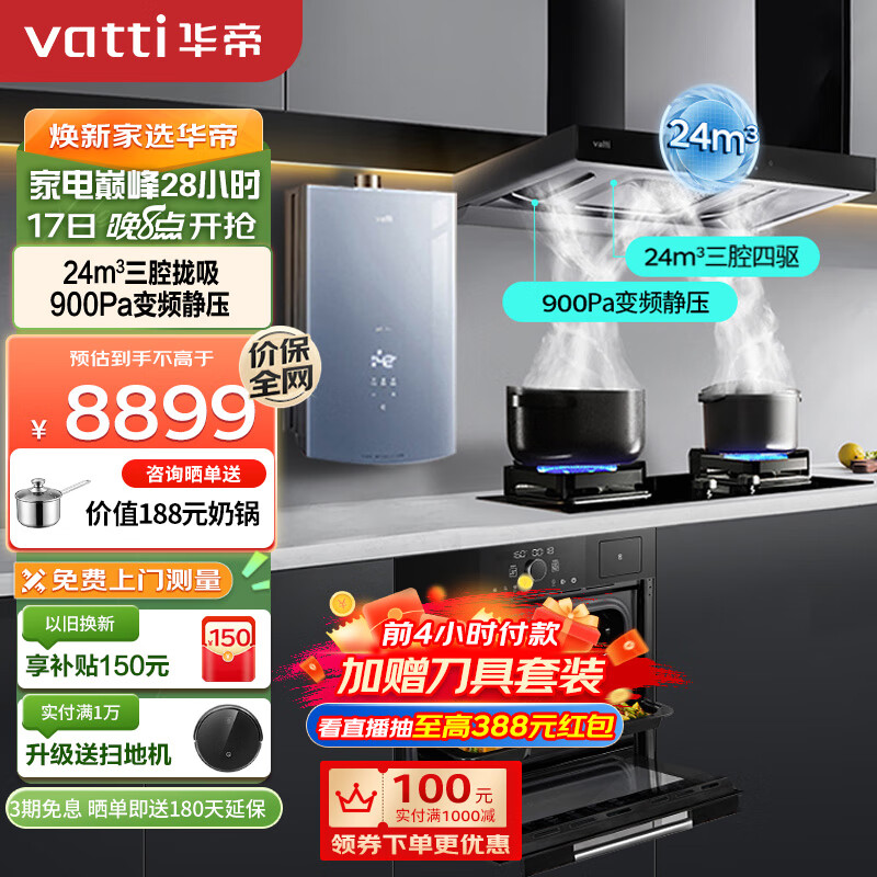 华帝(VATTI)抽油烟机灶具热水器蒸烤箱家用厨房多件套 i11206+72B+70-16+23011(天然气)价格:8898.00元!