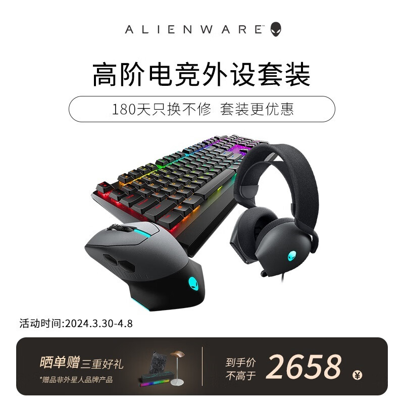 外星人(Alienware)610M+510K+520H 游戏电竞三件套装(无线游戏鼠标 有线机械键盘 电竞耳机)RGB高端外设送礼物黑色价格:2658.00元!
