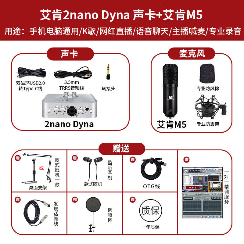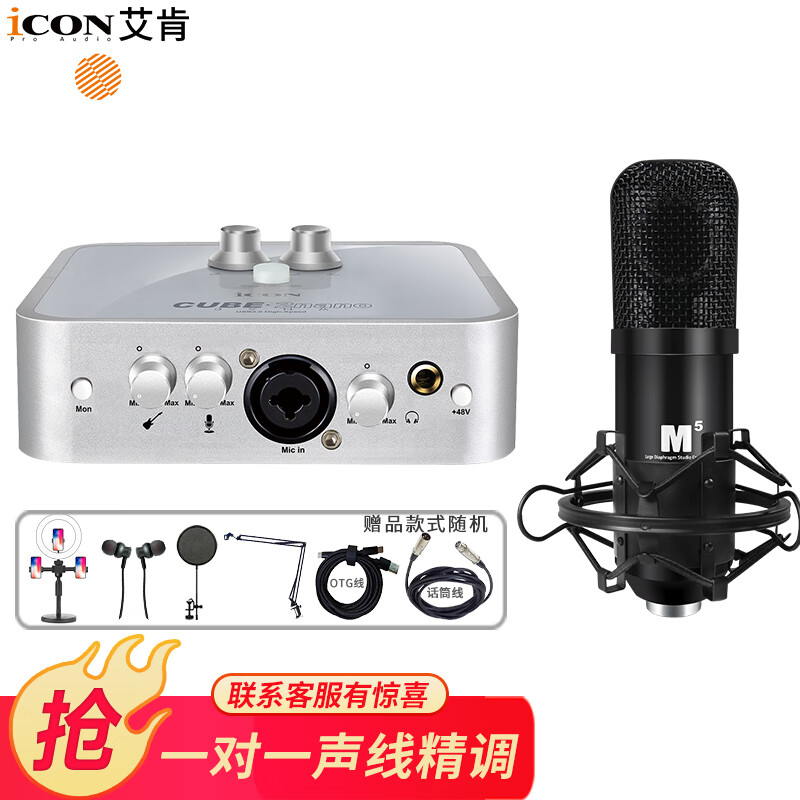 艾肯(iCON)2nano外置声卡+M5麦克风话筒套餐手机电脑喊麦唱歌录音主播直播设备 价格:2348.00元!
