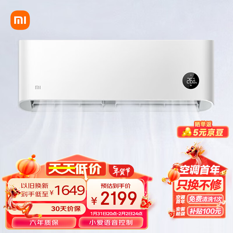 小米(MI)大1匹 新一级能效 变频冷暖 轻柔风感 智能自清洁 壁挂式卧室空调挂机 KFR-26GW/R1X1 以旧换新价格:2199.00元!