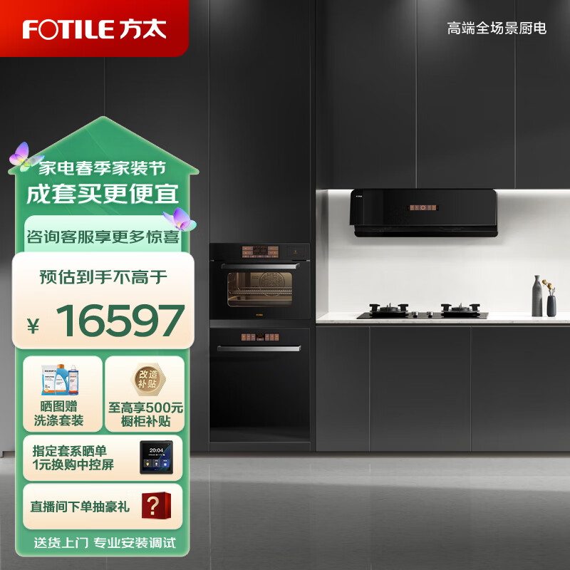 方太(FOTILE)烟灶洗烹四件套 24巡航风量烟灶套装 15套洗碗机 55L蒸烤炖炸蒸烤箱 F1A+THF1A+VF1.i+EF1.i价格:16597.00元!