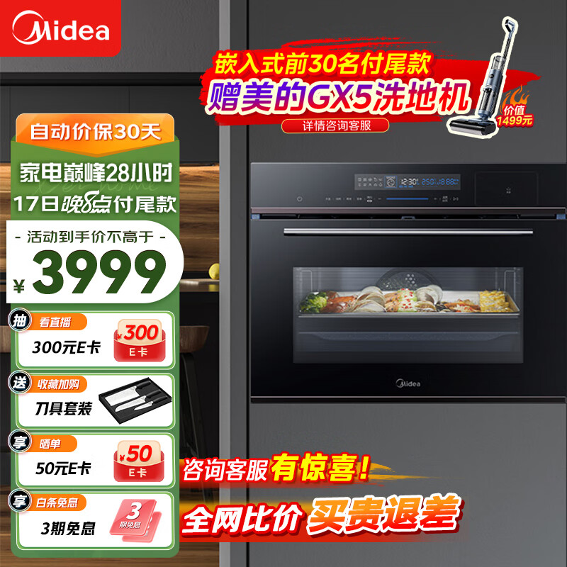 美的(Midea)嵌入式蒸烤一体机 家用智能多功能蒸箱烤箱二合一 京东小家APP操控 55L大容量搪瓷内胆 BS5051W价格:3999.00元!