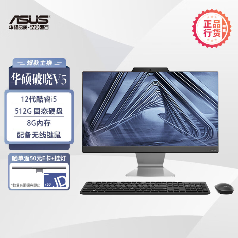 华硕破晓V5 23.8英寸家用商用一体机电脑台式电脑(12代i5-1235U 8G 512G固态 WIFI6蓝牙)黑价格:3599.00元!