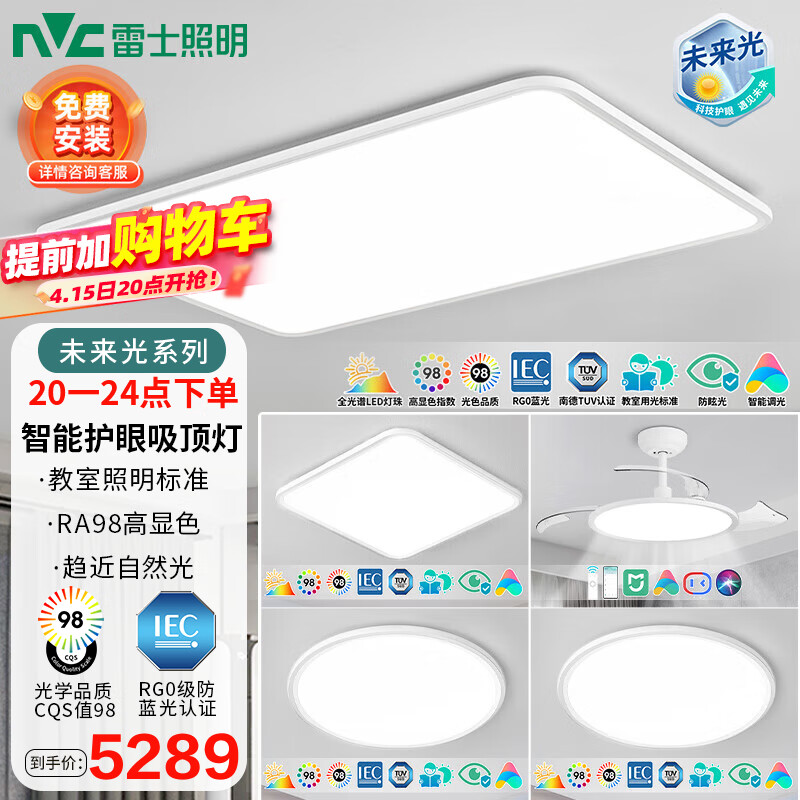 雷士(NVC)LED吸顶灯 现代简约客厅卧室灯具智控Ra98护眼全光谱灯饰未来光C价格:8999.00元!