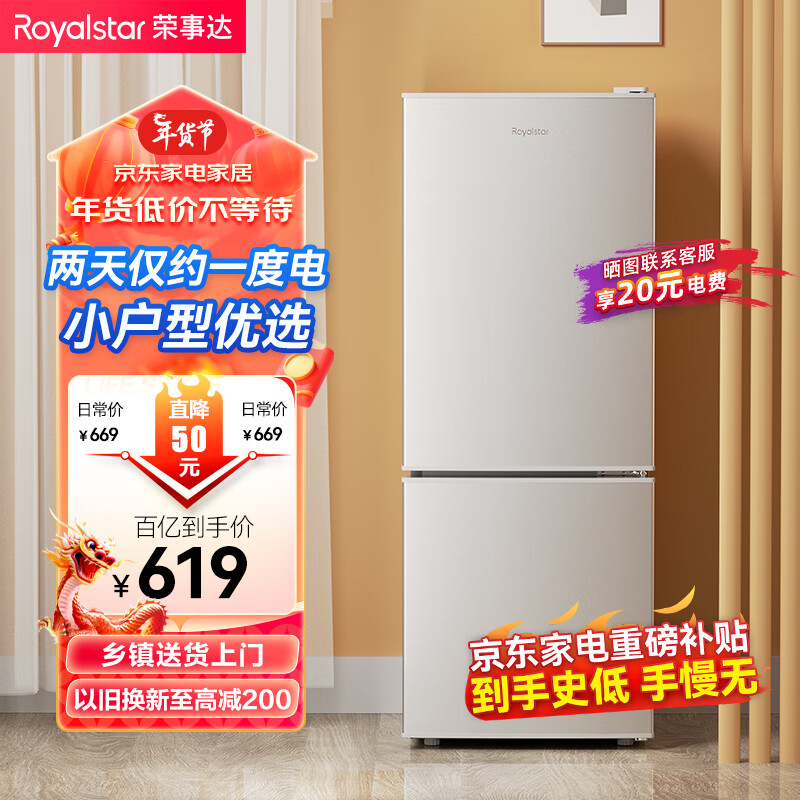 荣事达(Royalstar)100升迷你双开门小冰箱租房宿舍办公室小型家用双温冷冻冷藏节能环保省电低耗低音BCD-100ZY价格:619.00元!