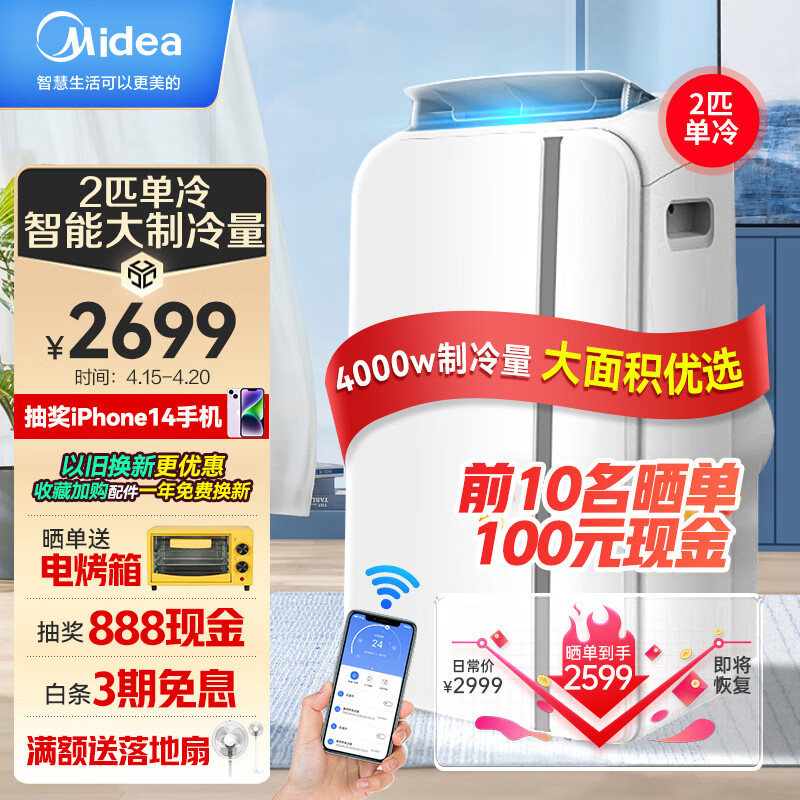 美的(Midea)移动空调2匹单冷 家用客厅出租屋厨房一体机空调无外机免安装立式空调 KY-40/N1Y-PD7价格:2699.00元!