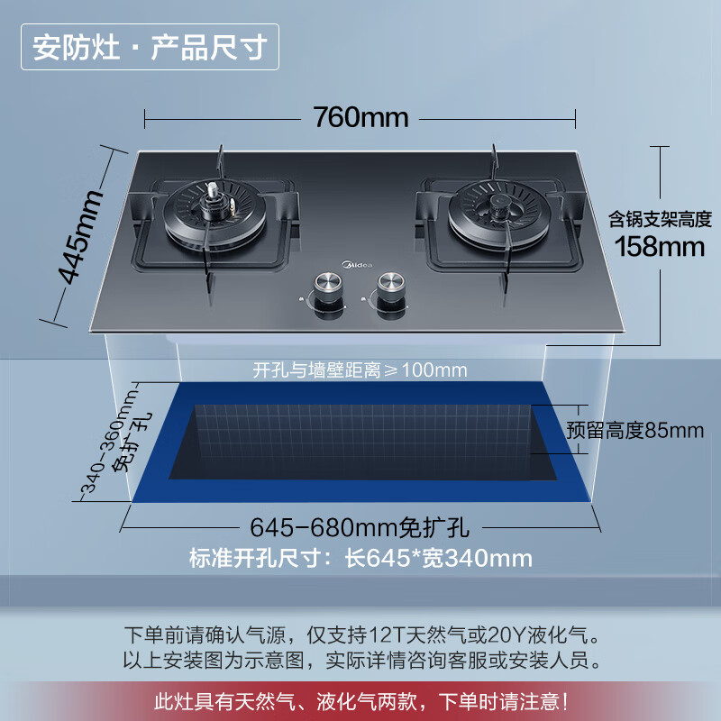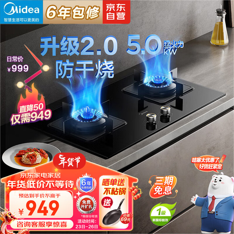 美的(Midea)燃气灶天然气 防干烧灶具 家用5.0kW大火力台嵌两用 双眼灶 安防灶 美颐享 Q36S价格:949.00元!