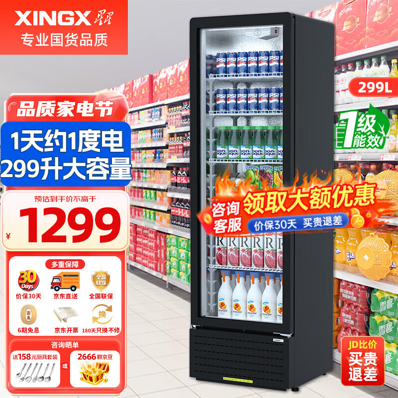 星星(XINGX)展示柜冷藏保鲜柜 饮料柜商用一级能效单门立式冰柜冰箱风冷直冷超市便利店陈列柜啤酒水果柜 热荐直冷省电1级能效299升LSC-310YPE价格:1299.00元!