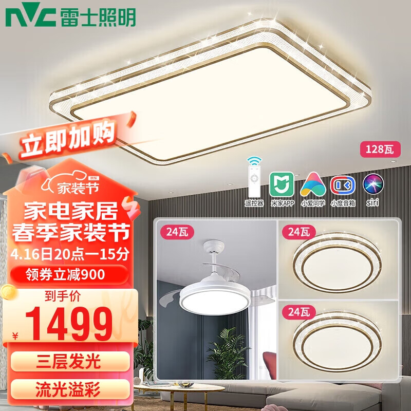 雷士照明(NVC)LED吸顶灯轻奢客厅大灯书房卧室餐厅灯具套餐仿水晶三室一厅价格:2399.00元!