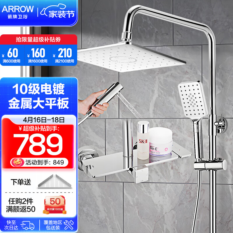 箭牌(ARROW)淋浴花洒套装 自洁淋浴喷头升级下出水 洗澡沐浴易洁手持顶喷 四功能平板自洁花洒3464S价格:1129.00元!