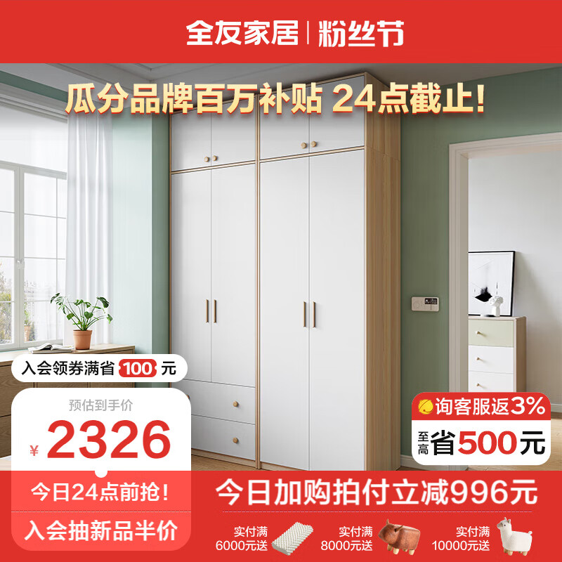 全友家居 现代北欧风二门衣柜卧室储物家具平开门衣柜126331价格:3322.86元!