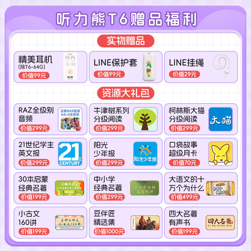 听力熊T6听力学习机复读机英语背单词神器小学初中高中口袋随身听力宝磨耳朵好学多64G价格:698.00元!