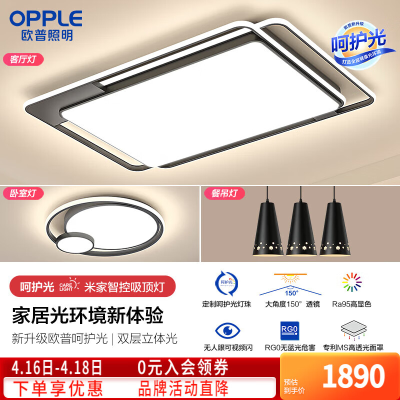 欧普照明(OPPLE) 吸顶灯客厅大灯米家智控LED照明灯具套餐2呵护光价格:1890.00元!