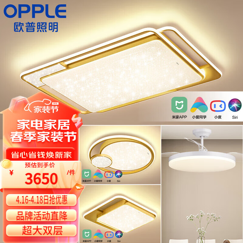 欧普(OPPLE)吸顶灯几何现代简约LED客厅卧室餐厅灯具套餐智能语音调光 套餐3价格:3650.00元!