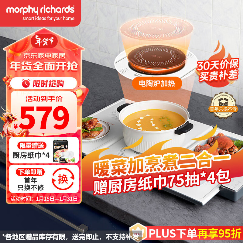 摩飞电器(Morphyrichards)折叠暖菜板 饭菜保温板热菜板 加热桌垫菜板 年货送礼赠老人送长辈 7档火力带电陶炉 MR8301价格:579.00元!