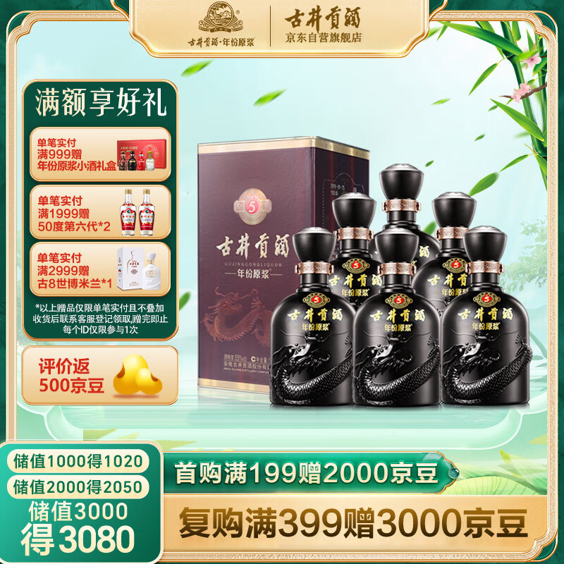 古井贡酒年份原浆 古5 浓香型白酒 55度500ml*6瓶 整箱装价格:1058.82元!